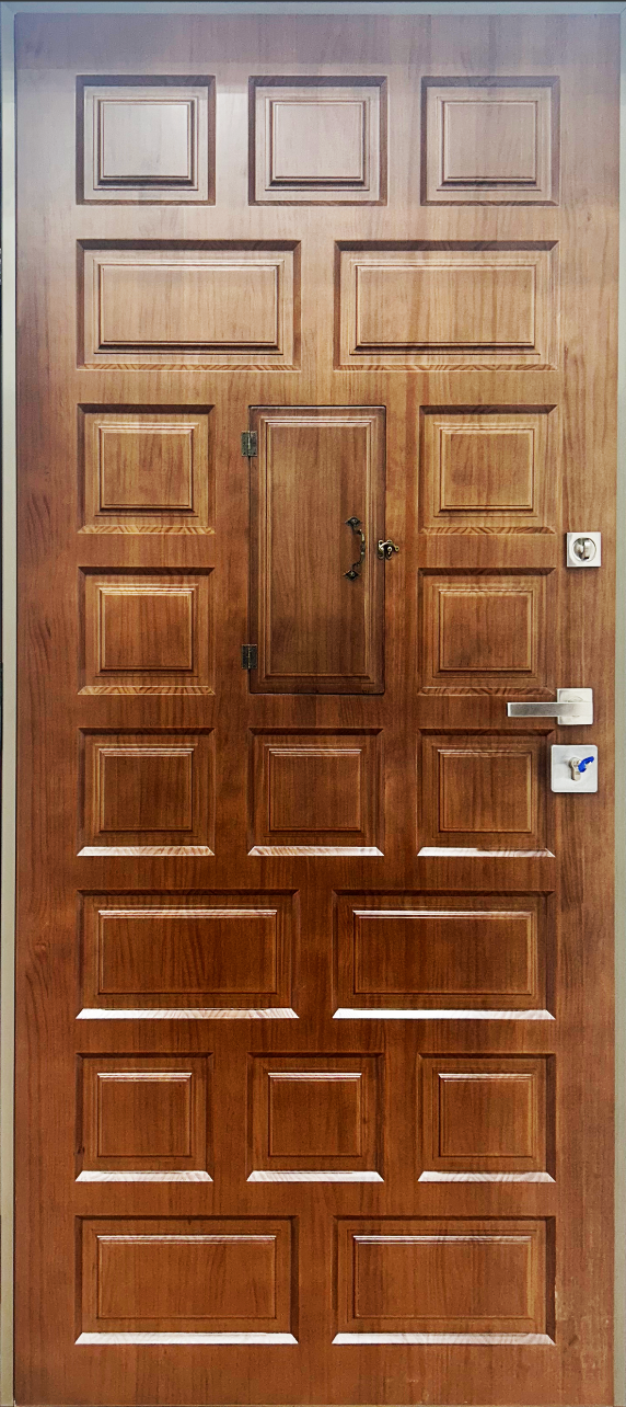Para puertas expuestas a la intemperie se recomienda tableros de aluminio imitación madera.